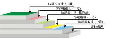 ③防靜電底漆:采用滲透性及附著力特強防靜電環(huán)氧底漆滾涂一道,增強表面附著力;